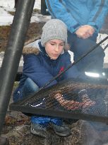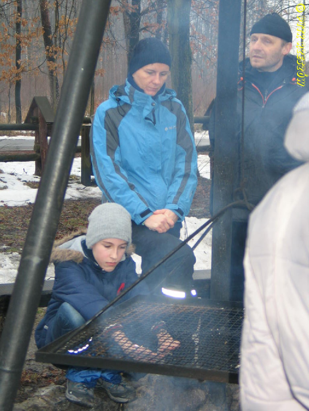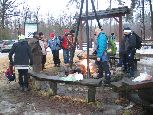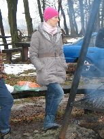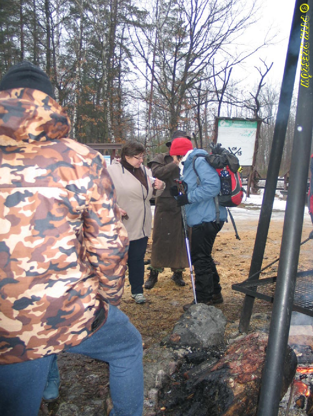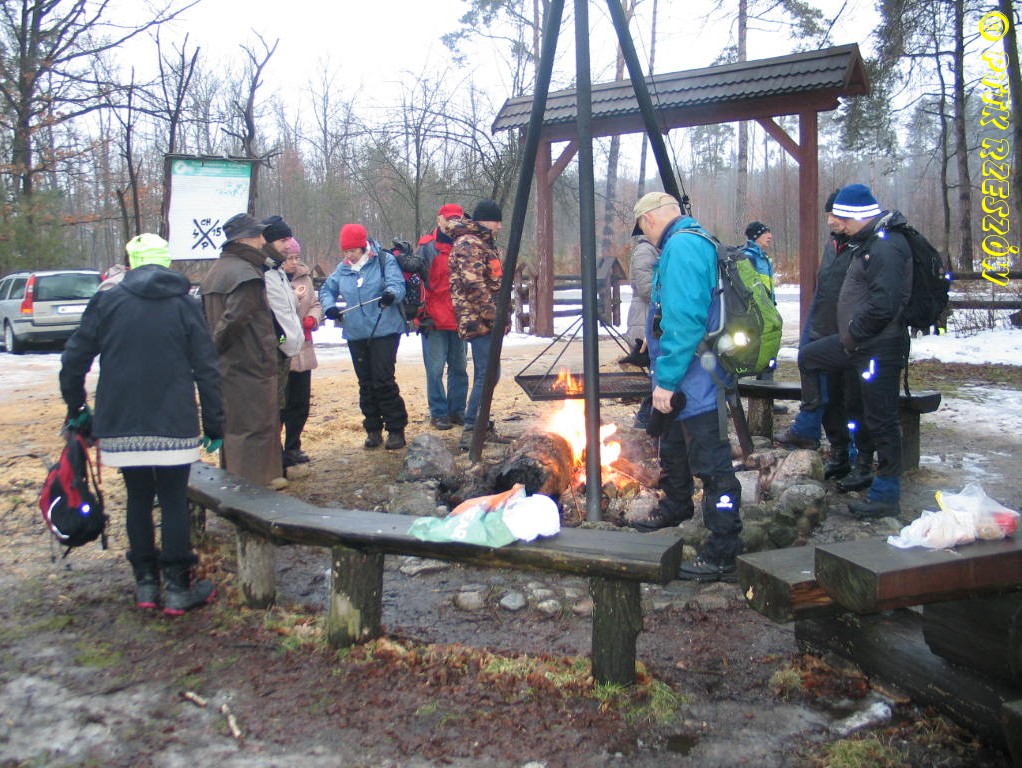 W Bratkowicach, na miejscu biwakowym (ławy, zadaszenie) zakończenie z ogniskiem,