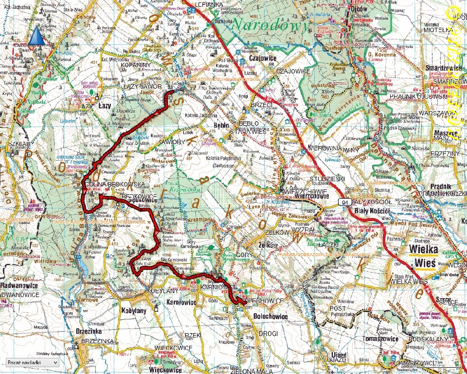 Zawyjrzał – Dolina Będkowska – Będkowice – Dolina Kobylańska - Bolechowice.