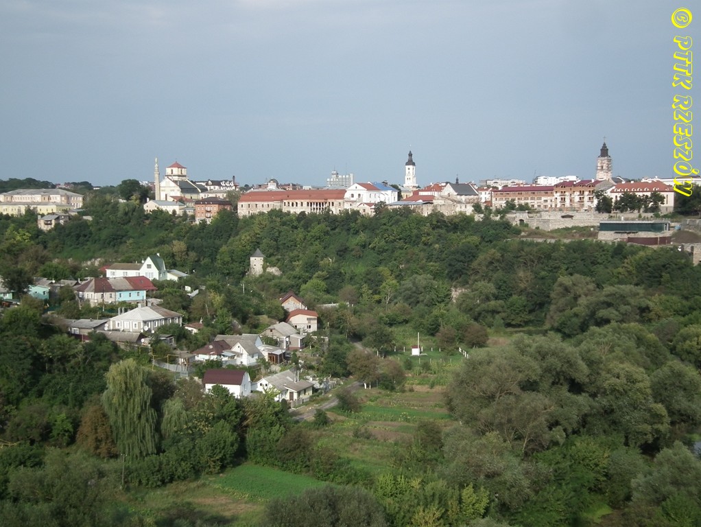 Kamieniec Podolski - “miasto na wyspie”- zamek, obwarowania miasta, katedra łacińska, rynki, ratusz, kościoły: dominikanów, trynitarzy, franciszkanów;