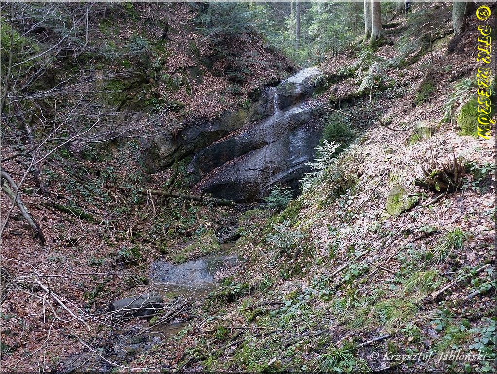 Czarnorzeki – Rez. „Prządki” – Sokoli Grzbiet – Zaginione Skałki – Wodospad Trzy Wody – Połom (445 m – figura św. Piotra) – Wola Jasienicka