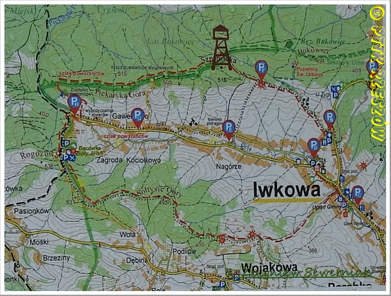 Przejście piesze na trasie: Czchów - Machulec (480) - Bukowiec (494) - Szpilówka (516) - wieża widokowa - Piekarska Góra (515) –Bacówka „Biały Jeleń”- Rogozowa (531) – Rajbrot