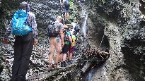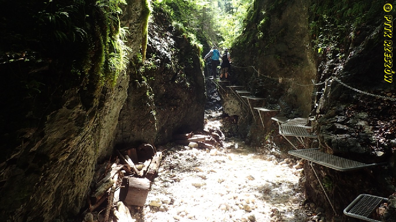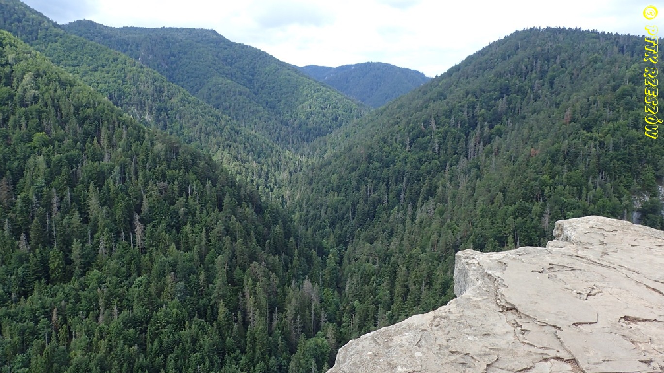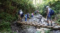 Podlesok (550m n.p.m.) – Klastorisko (770m n.p.m.) – przełom Honradu (kładki nad wodą) – Podlesok (około 5h).