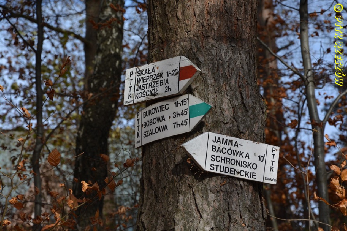 Paleśnica lub Olszowa – Jamna (490) – Jastrzębia – Kąśna Dolna – Ciężkowice (szlak nietoperza) – Góra Skała (wodospad).