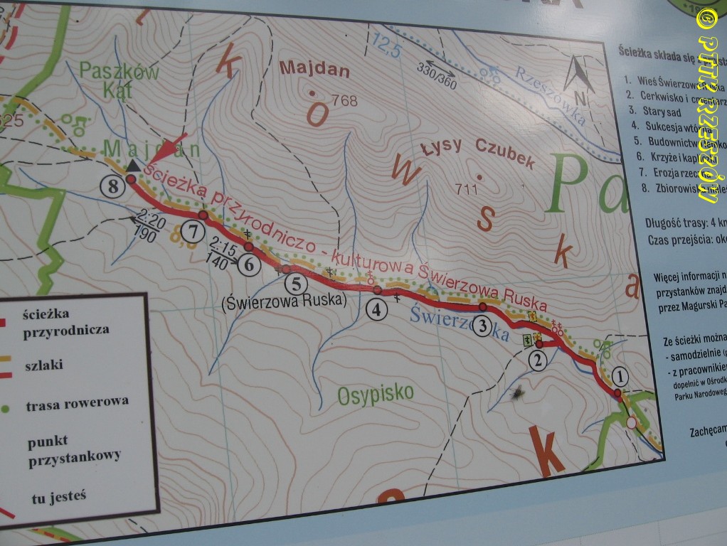 Przejście piesze: Folusz – Magura Wątkowska (842) – Przeł. Majdan – ścieżka przyrodnicza – Świerzowa Ruska – Świątkowa Wielka.